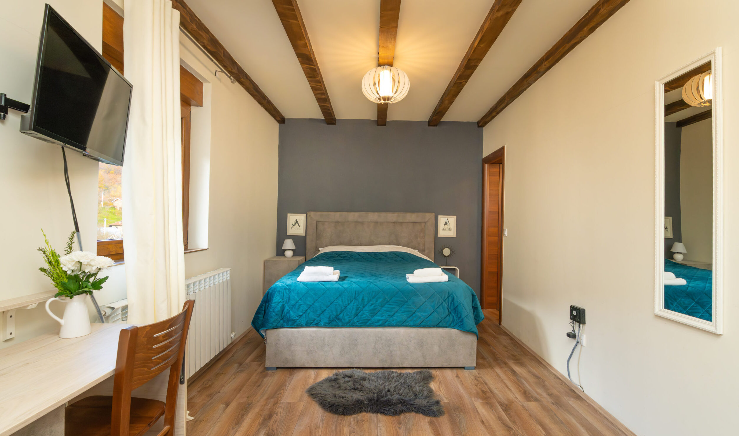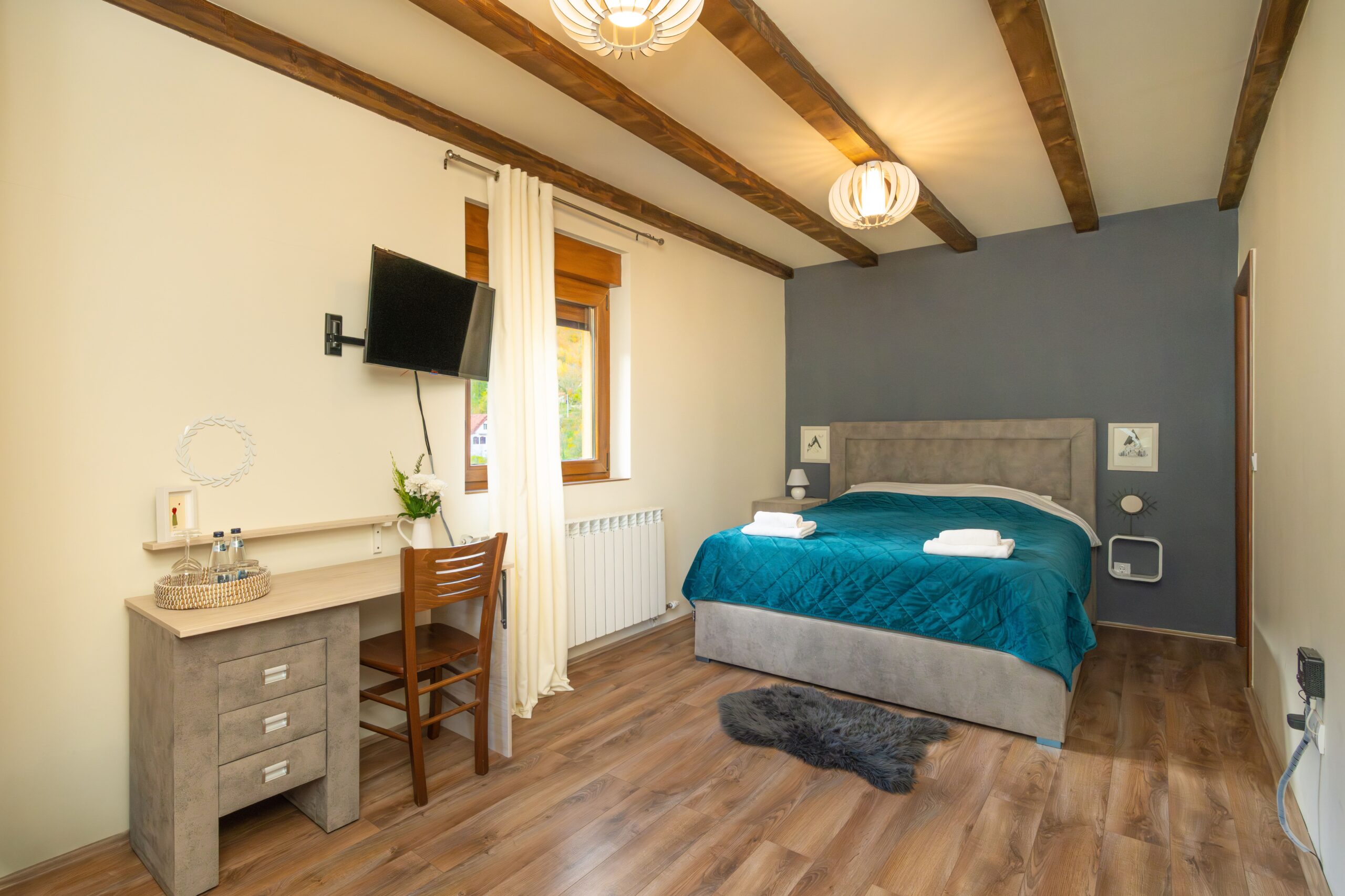Forest fantasies dvokrevetna soba opremljena je komfornim bračnim krevetom, toaletnim stolom, televizorom, plakarom, mini barom kao i sopstvenim kupatilom sa tuš kabinom.