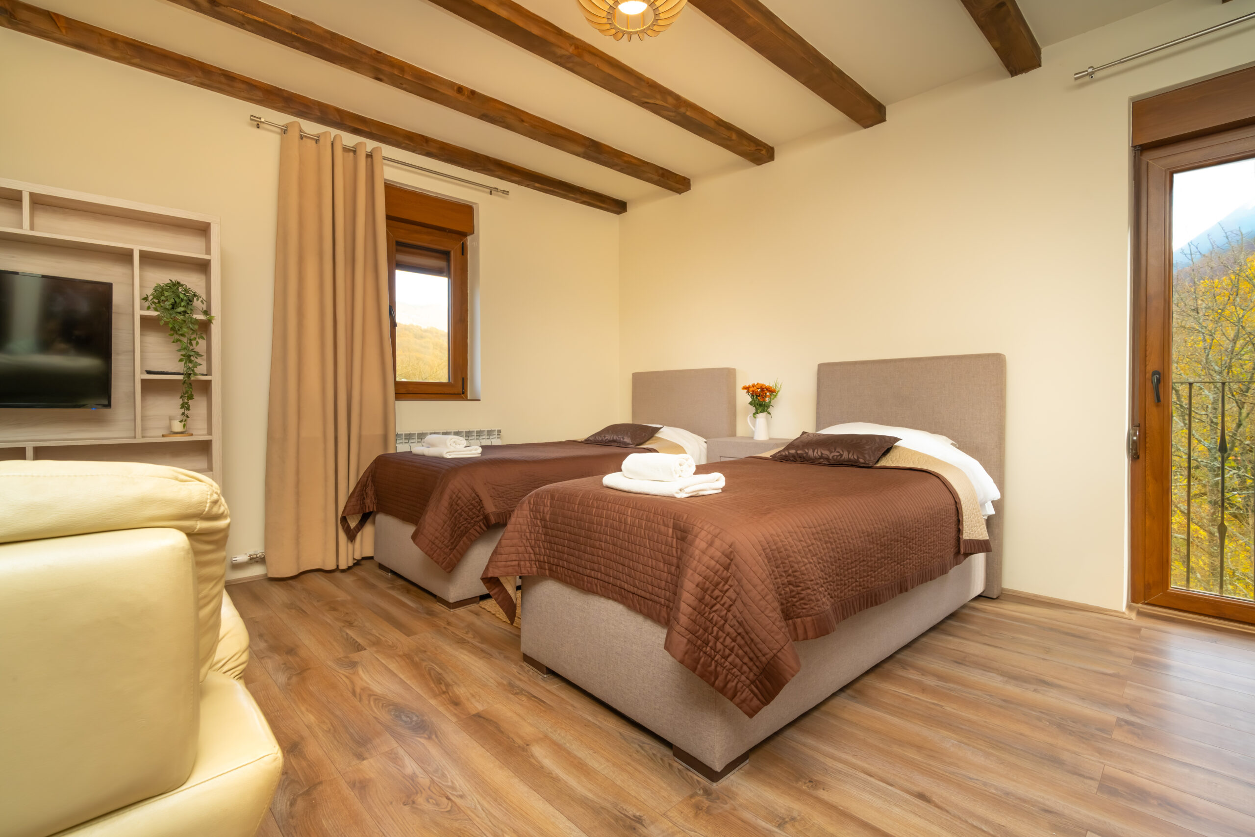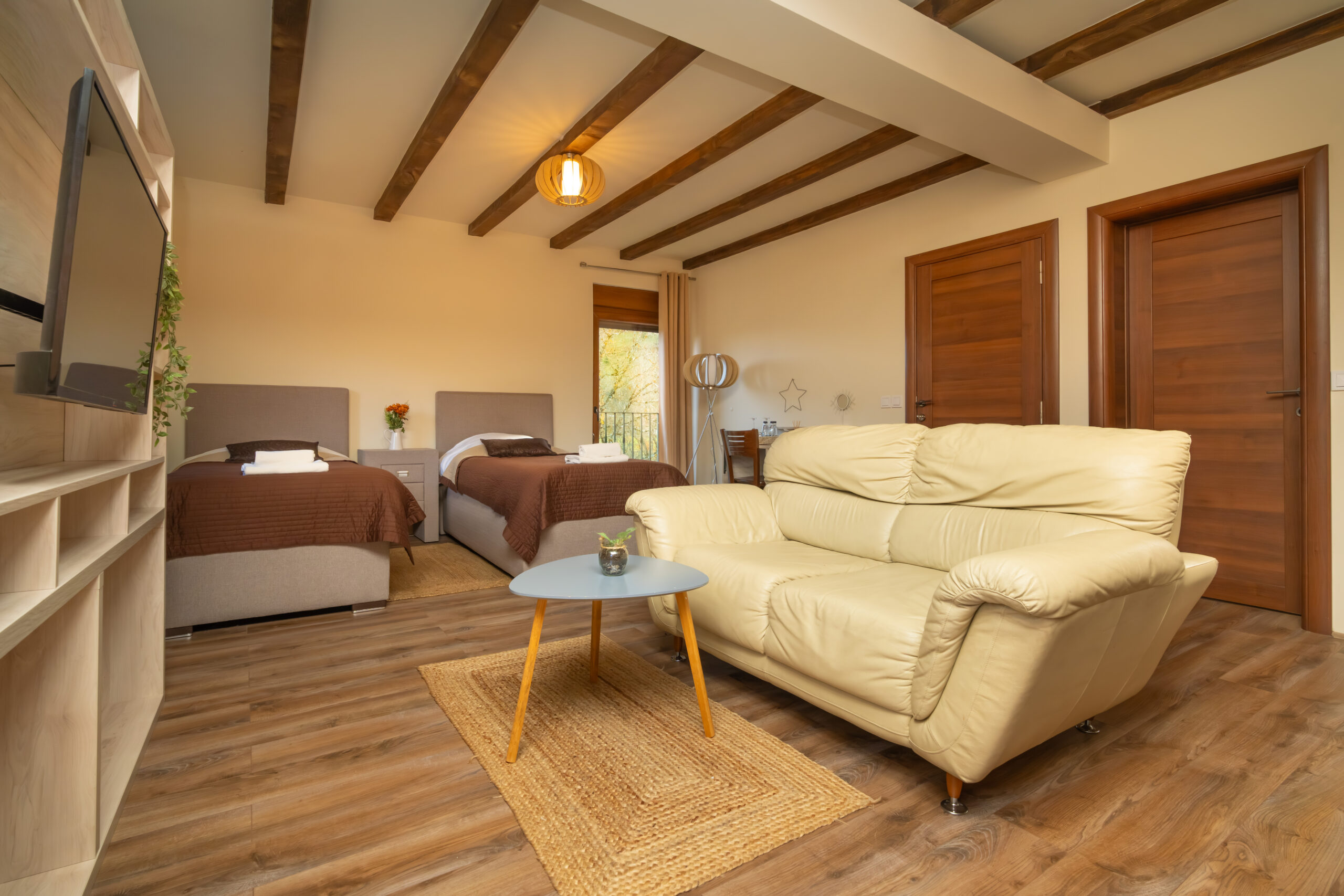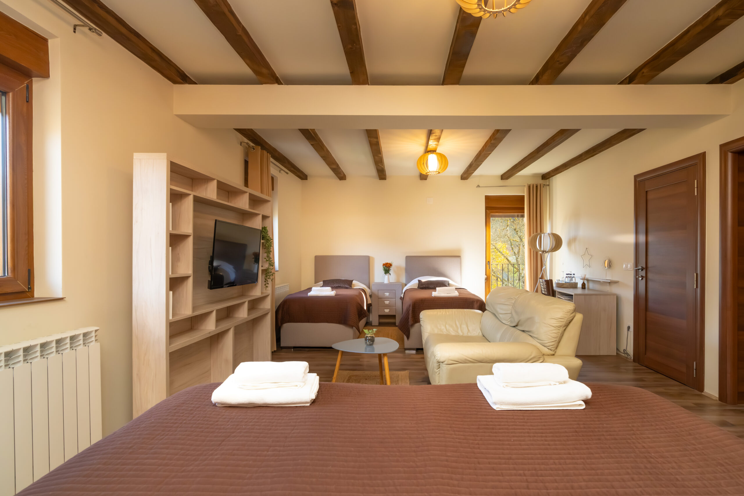 Zahvaljujući velikom otvorenom prostoru postoji mogućnost dodavanja još jednog ili dva pomoćna ležaja, kao i krevetića za bebe. Ova soba je odličan izbor za veću porodicu ili grupu prijatelja. Zajedno možete boraviti u Zvjezdanoj dolini i osjetiti sve blagodeti kako hotela tako i njegovog okruženja.