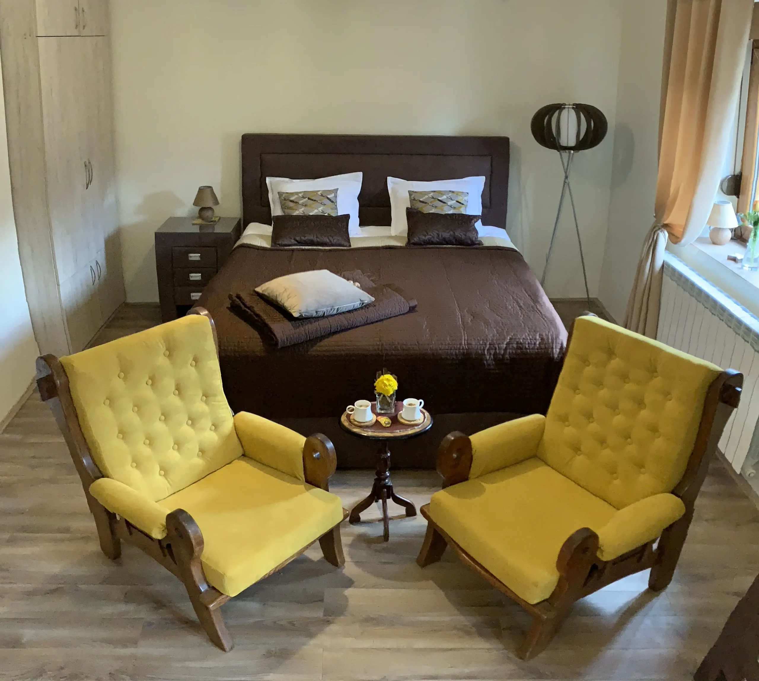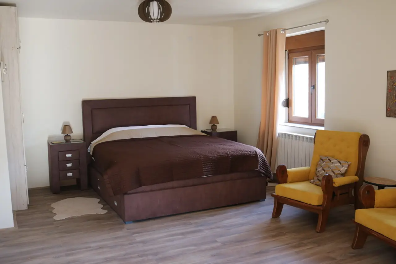 Idealna soba za miran odmor i opuštanje, spoj udobnosti i topline u prirodnom ambijentu.