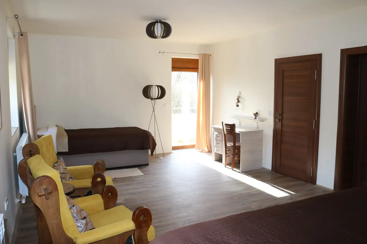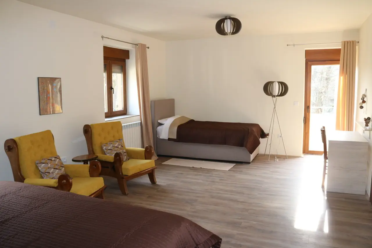 Zahvaljujući velikom otvorenom prostoru postoji mogućnost dodavanja još jednog ili dva pomoćna ležaja, kao i krevetića za bebe. Ova soba je odličan izbor za veću porodicu ili grupu prijatelja. Zajedno možete boraviti u Zvjezdanoj dolini i osjetiti sve blagodeti kako hotela tako i njegovog okruženja.